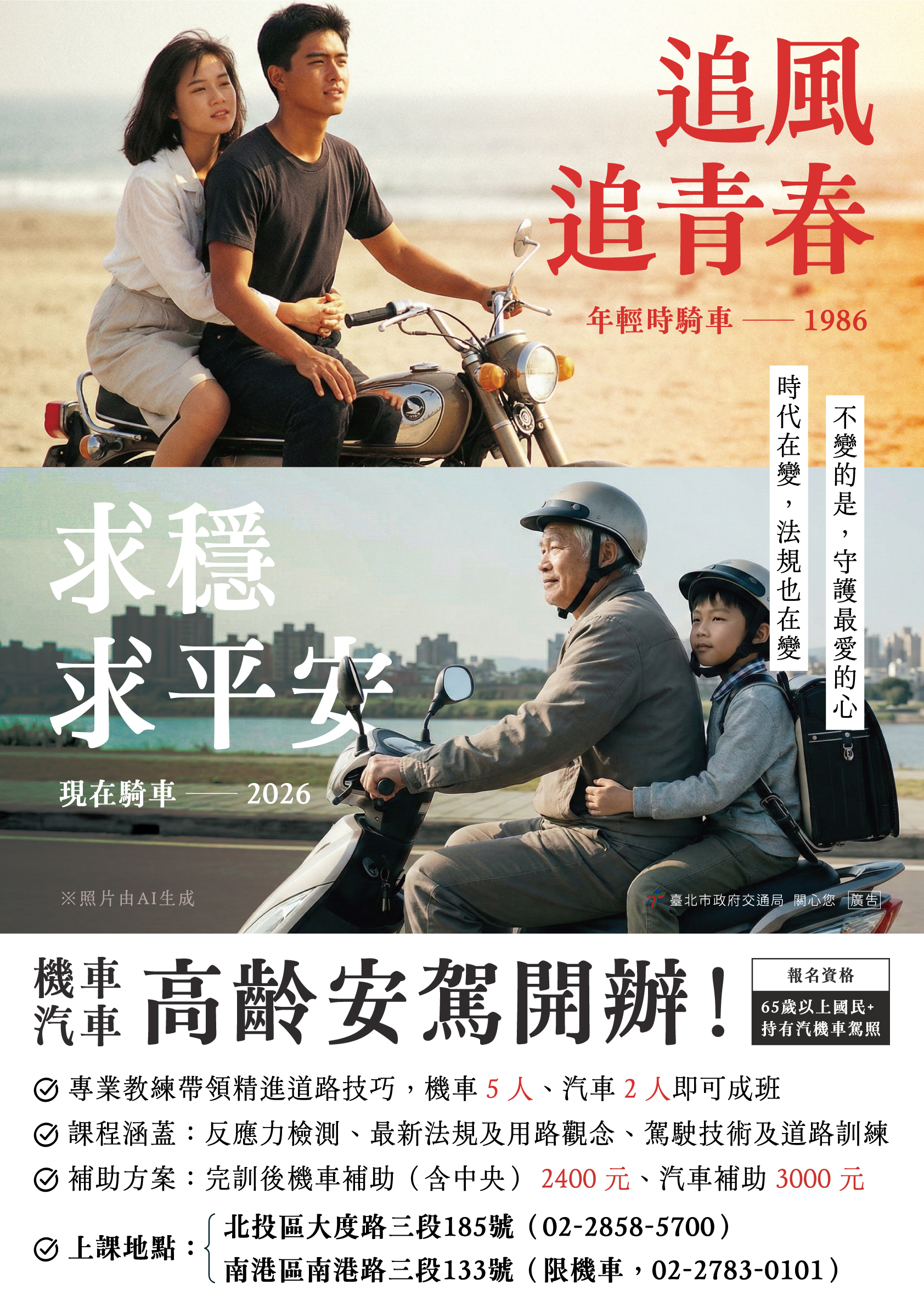 「高齡汽機車駕訓補助」宣導海報共2張
